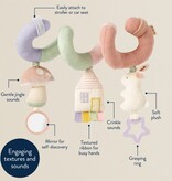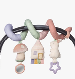 Travels abound! Endless adventures await with your babe’s new travel tagalong, the Itzy Bitzy Spiral Car Seat Activity Toy from our Bitzy Bespoke™ collection! Watch as your little one reaches for the dangling rainbow rings, smiles at their reflection in the hanging mirror, and grasps for the ribbons and plush moon toy. These interactive hanging toys will keep their little hands busy during car rides, walks and other adventures. Our natural cotton fabrics are gentle and soft to baby’s touch. The flexible spiral design easily and securely attaches to car seat handles or stroller bars for fun on-the-go!
